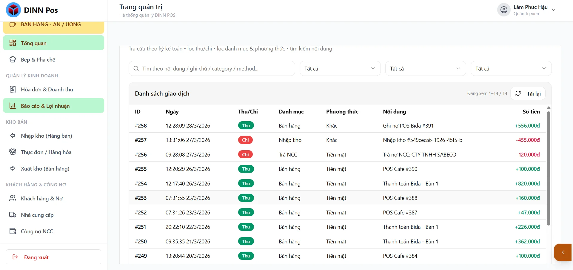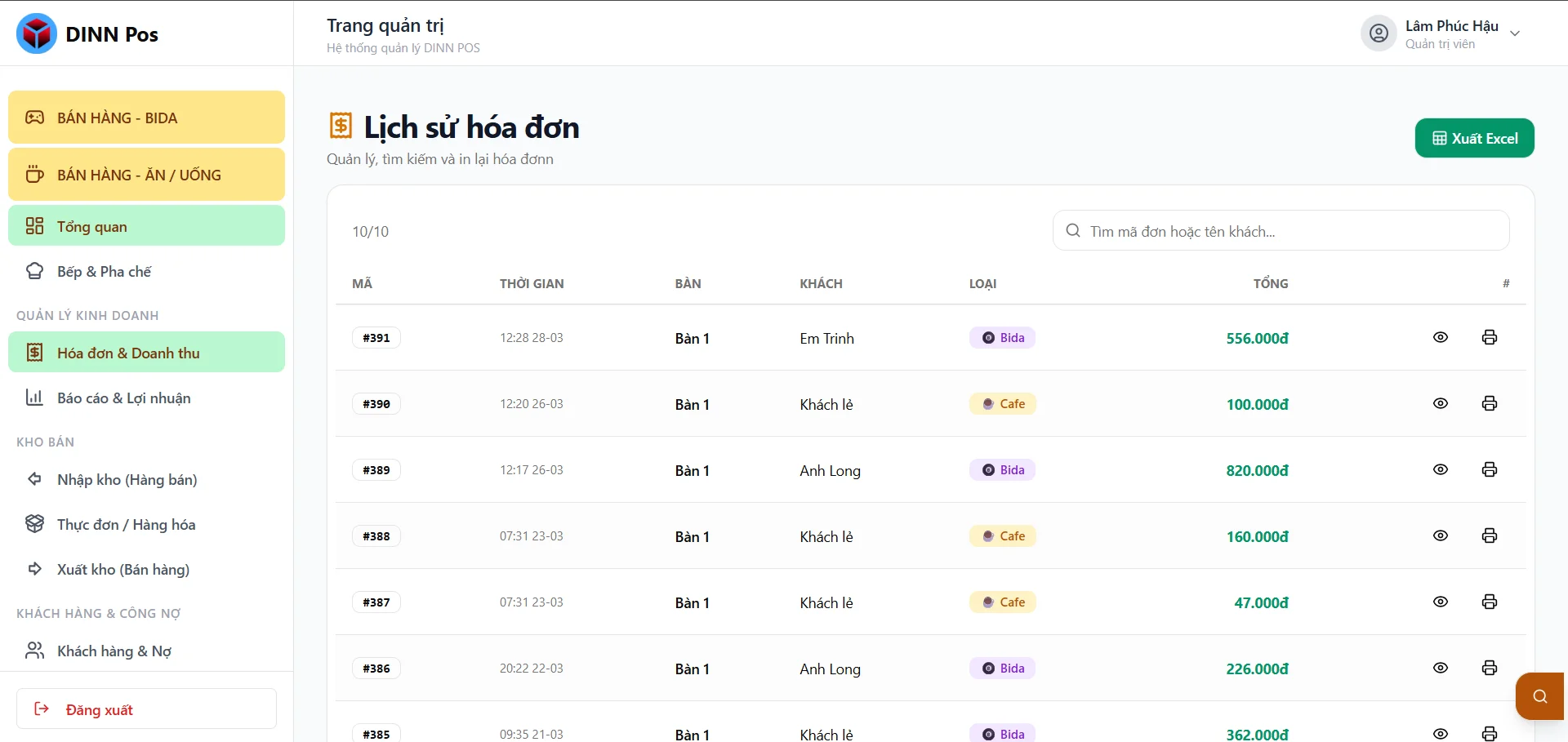- Quản lý cafe, quán ăn, bida trong cùng hệ thống