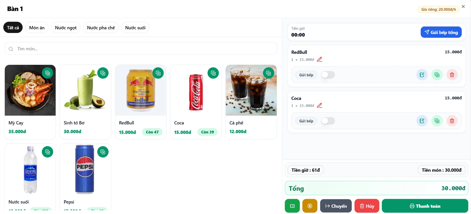 - Tính tiền chính xác theo giờ hoặc combo